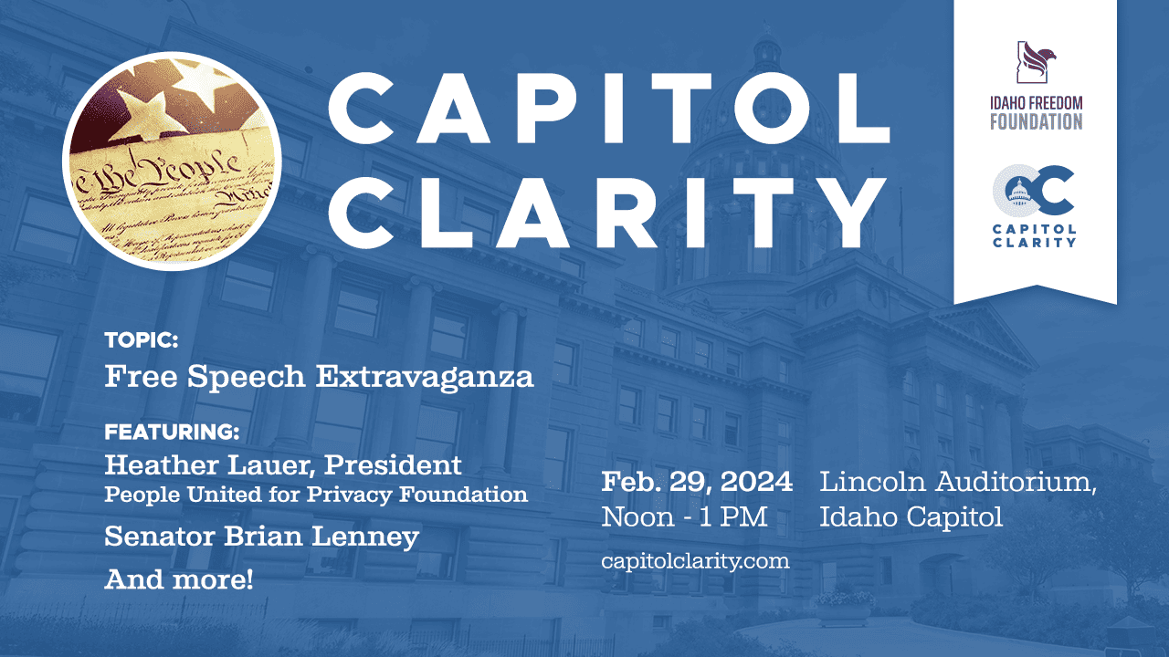 Idaho Freedom Foundation, the Gem State’s most influential conservative policy center and think tank, announces the next Capitol Clarity program lineup for Thursday, February 29, 2024, at noon in the Lincoln Auditorium.