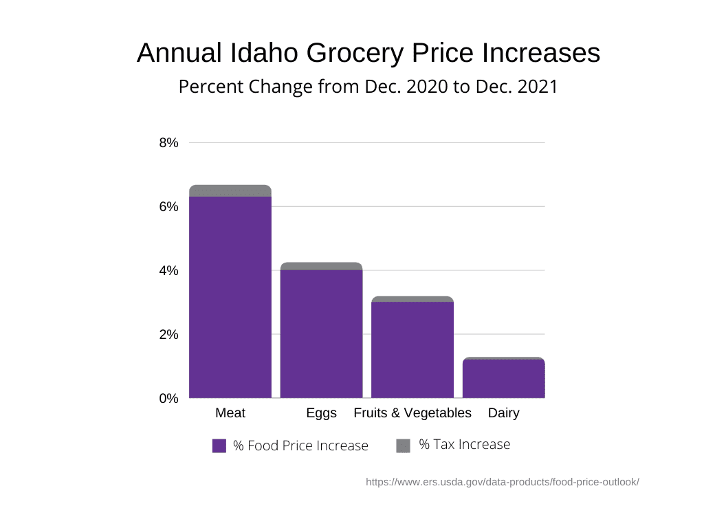Grocery prices rose by 7.6% last year, making it more difficult for families to afford basic kitchen staples like meat, fruits, vegetables, and dairy. Tacking-on Idaho’s 6% sales tax on groceries only hurts consumers, especially families, by further raising the cost of putting food on the table. After years of debate, this is the perfect time for the Idaho Legislature to offer some relief by finally repealing the grocery tax.