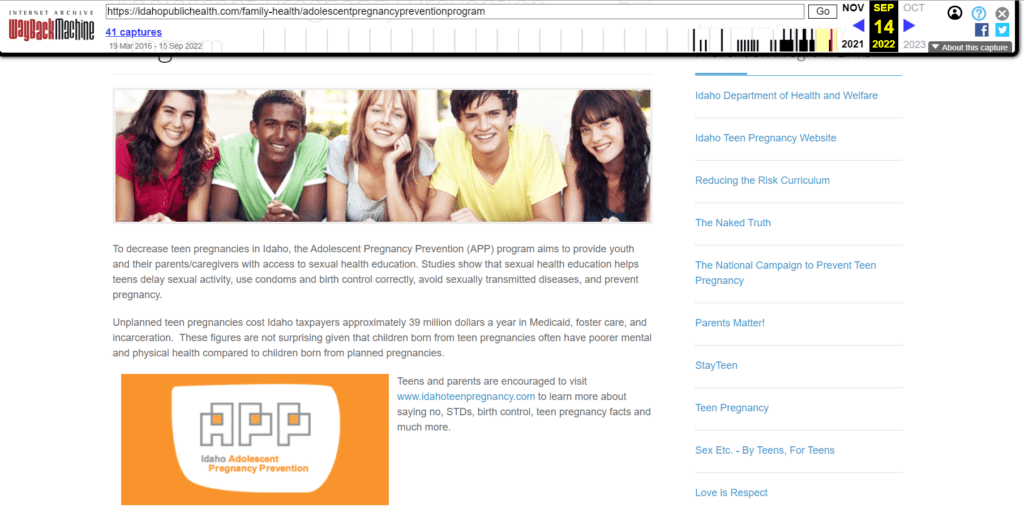 The Wayback Machine shows how the health district has removed controversial resources from its website after being exposed for its radical sex education materials. IFF’s Center for American Education (CAE) has saved the records from the Idaho North Central Health District.