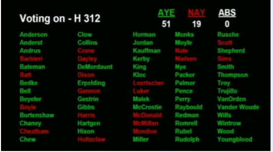 In the Senate, tax raisers include Steve Bair, Bert Brackett, Cherie Buckner-Webb, Dean Cameron, Bart Davis, Lori Den Hartog, Jim Guthrie, Lee Heider, Brent Hill, Dan Johnson, Maryanne Jordan, Shawn Keough, Roy Lacey, Todd Lakey, Abby Lee, Patti Anne Lodge, Curt McKenzie, Dean Mortimer, Jim Patrick, Jim Rice, Dan Schmidt, Jeff Siddoway, Michelle Stennett, John Tippets, Janie Ward-Engelking and Chuck Winder. Sens. Steven Thayn and Marv Hagedorn voted against this tax hike, but they previously voted for an even bigger tax and fee package that failed.