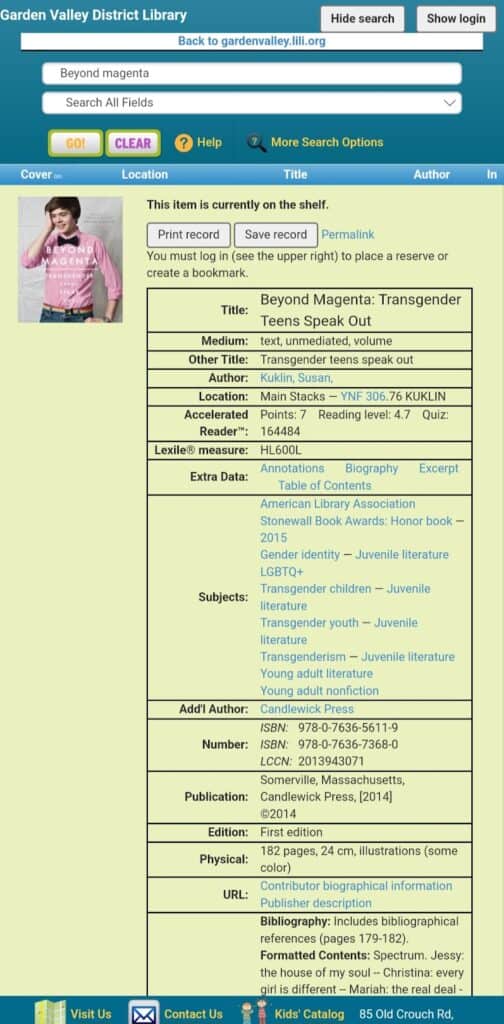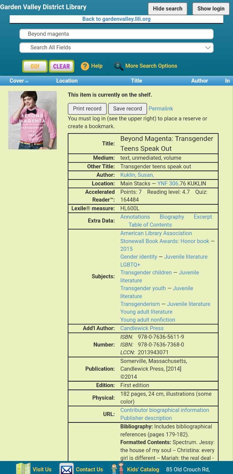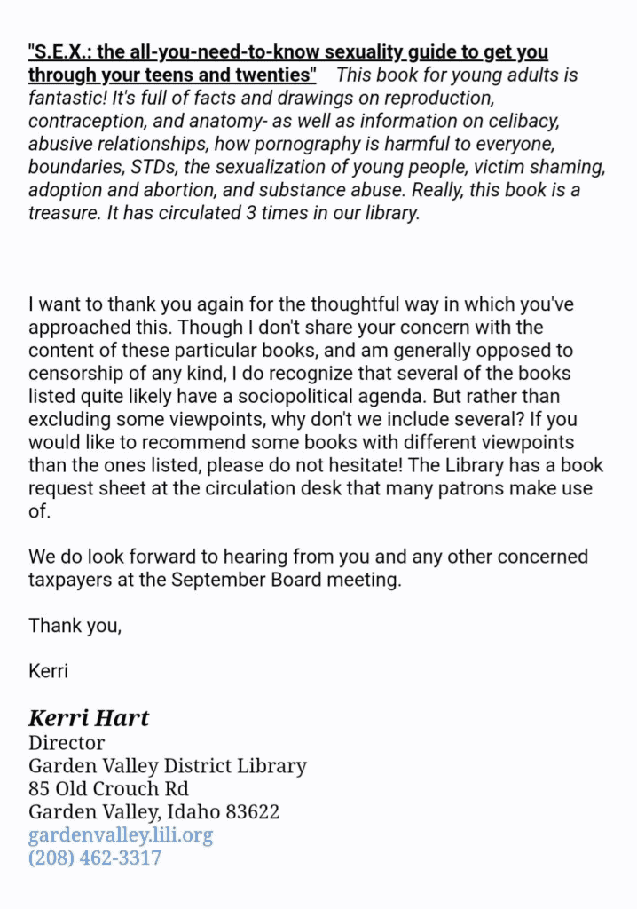 Kerri Hart and the Garden Valley District Library Board of Trustees did not respond for comment at the time of publishing.