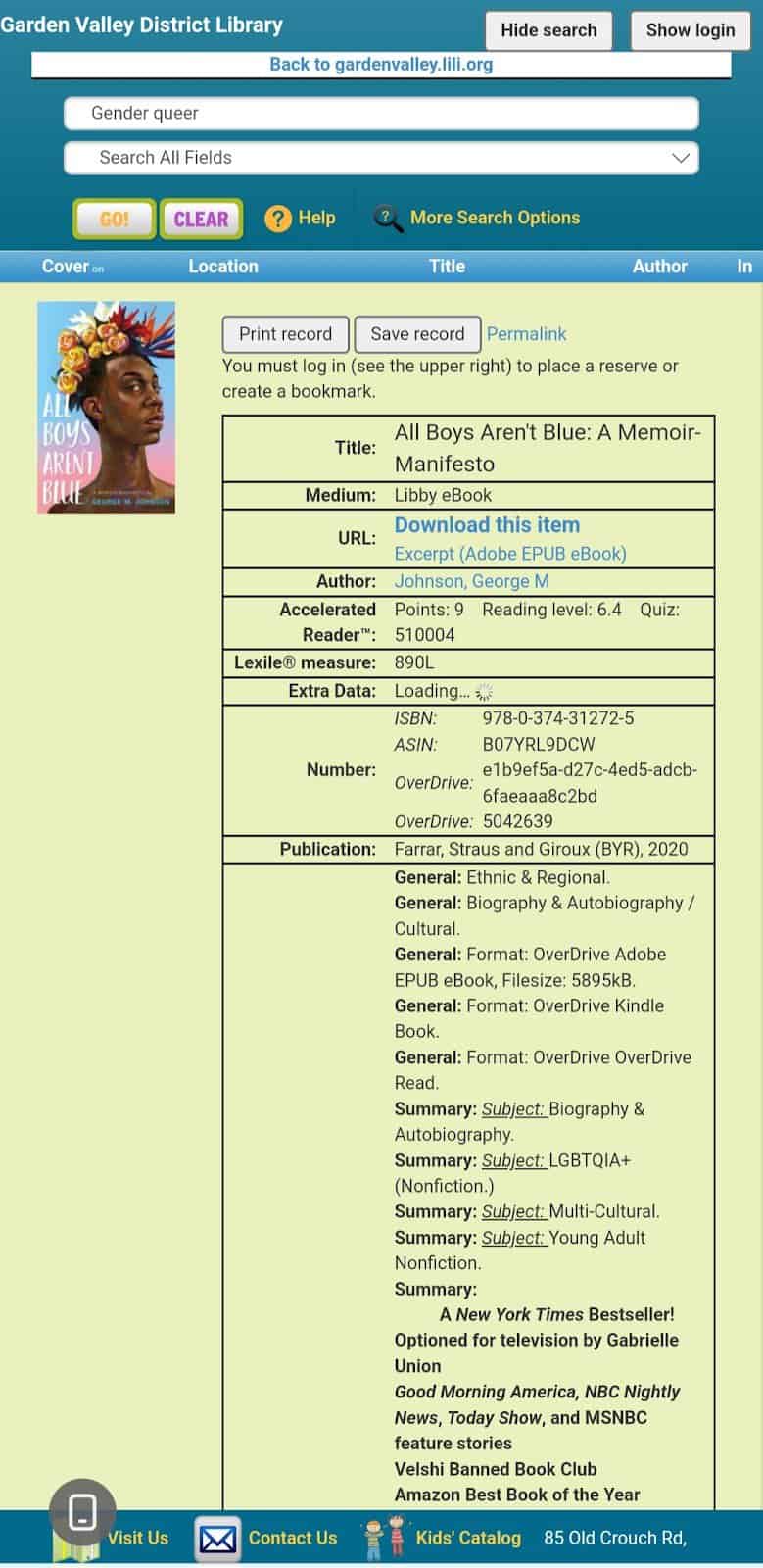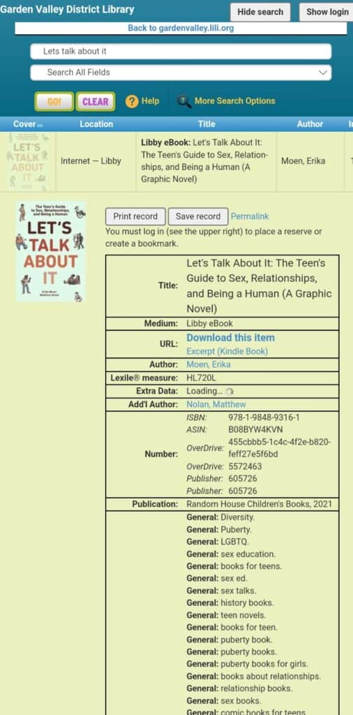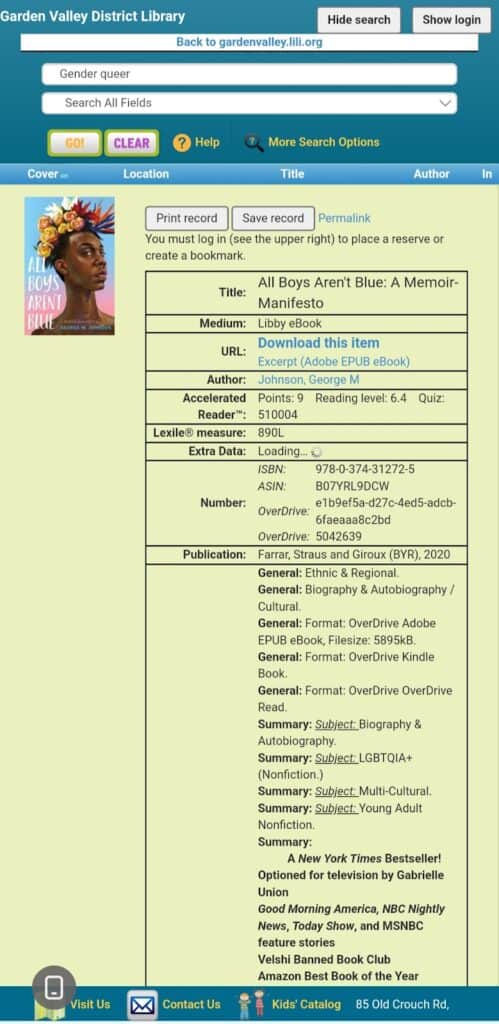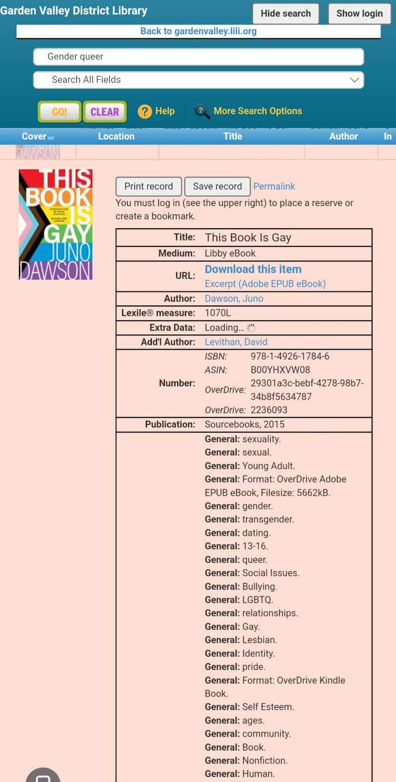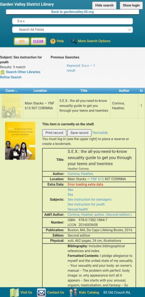 The IFF’s Center for American Education has obtained public records showing that our recent report on school libraries has prompted some Garden Valley residents to urge the local library to reform its collection such that it is appropriate for the school-aged children who use it. The Garden Valley Library offers numerous obscene books to minors including "Let’s Talk About It: The Teen's Guide to Sex, Relationships, and Being a Human," "S.E.X: The All-You-Need-to-Know Progressive Sexuality Guide to Get You Through Your Teens and Twenties," "This Book is Gay," "All Boys Aren't Blue," and "Beyond Magenta." The library also provides books on transgenderism for children ages four to eight years old such as "Julian is a Mermaid." Some of these books are available as e-books, allowing children to download them onto their electronic devices perhaps without their parents’ knowledge.
