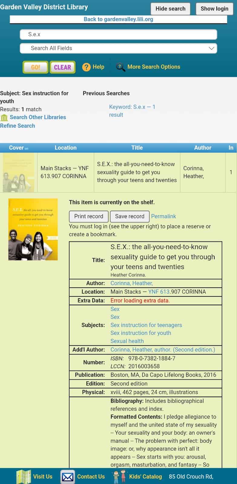 According to Hart, "S.E.X." has circulated at least three times in the library.