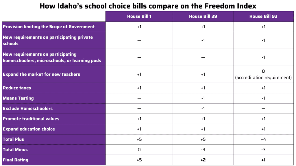 House Bill 93, the education tax credit bill heading to the Governor’s desk, passed the House on a 42-28 vote and the Senate 20-15. So, in the House, 69% of Republicans voted yes, and all Democrats voted no. In the Senate, 69% of the Republicans voted yes, and all Democrats voted no. No “pattern” here. House Bill 93 was the third iteration of three similar education tax credit bills. House Bills 1, 39, and 93 were, respectively, rated plus five, plus two, and finally, plus one. Please review the matrix below to understand what changed and how that affected our ratings.