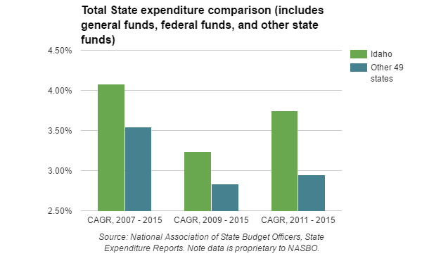 So, Idaho is growing total state spending faster than the average of the other 49 states.